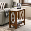 Faux Marble Side Table - Farmhouse Style with Storage Shelf